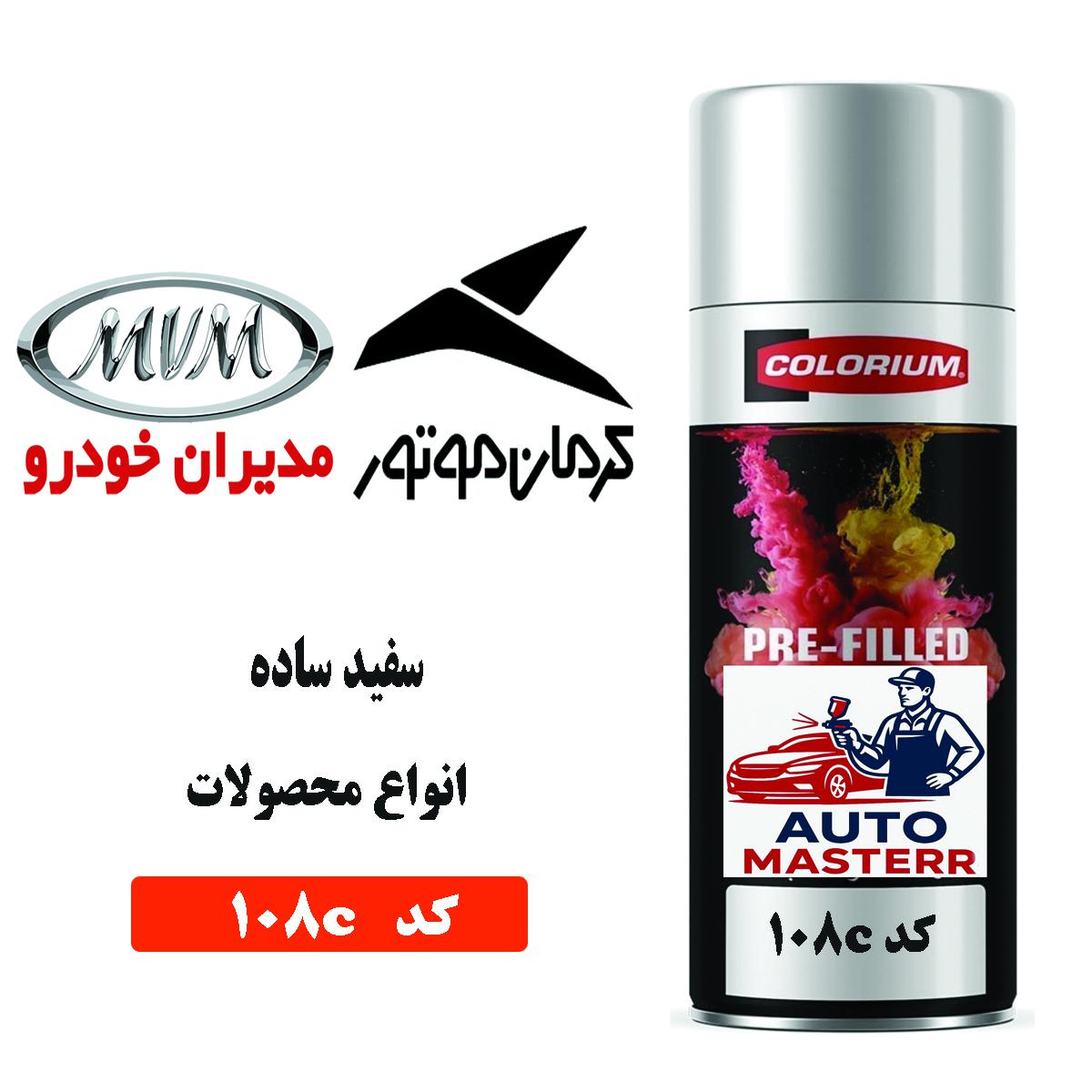 اسپری رنگ خودرو سفید سالید کد 108C مناسب خودروهای کرمان موتور و مدیران خودرو با پوشش یکنواخت و رنگ طبیعی.
